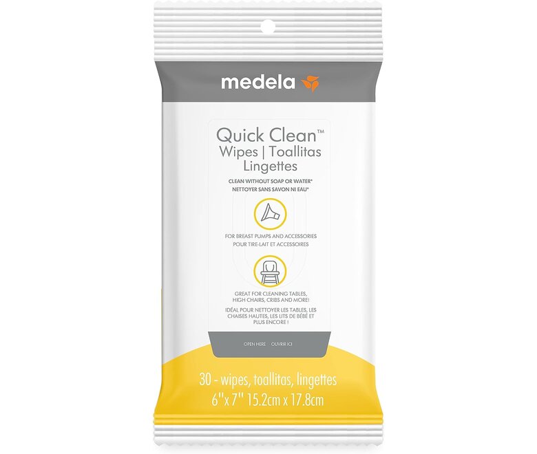 With Medela Quick Clean breast pump wipes, convenient and portable pump cleaning is easier than ever. No need for soap and water cleaning after each pump session, simply clean your breast pump and accessories with these wipes.