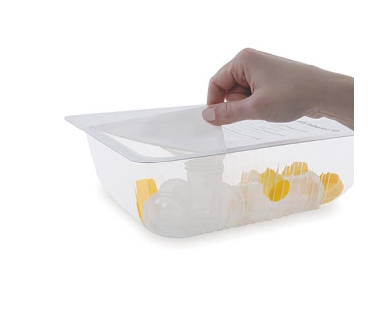 • Emballé dans un plateau robuste :L'emballage robuste du plateau sert également de lavabo pour les patientes hospitalisées. Il est transparent pour que le contenu soit facilement visible, muni d'un emballage Tyvek facile à ouvrir et fabriqué à partir de matériaux recyclables.