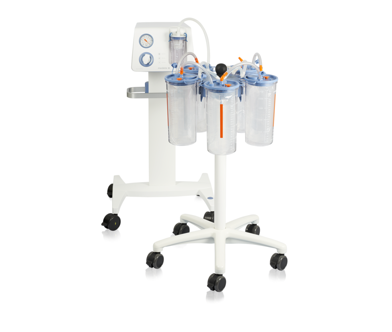 Pour compléter le portefeuille, Medela propose une large gamme de solutions permettant d’étendre les capacités des systèmes de collecte (chariot, composants de connexion en série, vanne de commutation, gobelets pour échantillons).