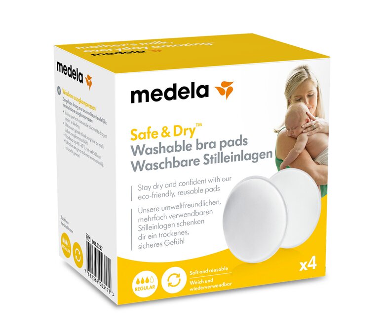 Rimani asciutta e sicura con le coppette per seno Medela, ecologiche e lavabili, in moda da poterle indossare ripetutamente.