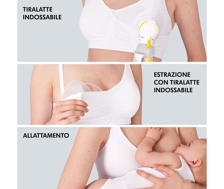 Ci sono diversi prodotti nella nostra gamma per aiutarti nel tuo percorso di allattamento ed estrazione. Se desideri allattare ed estrarre ti consigliamo di usare il nostro Reggiseno 3 in 1, che è progettato per 1) l'uso con tiralatte indossabile 2) l'uso con tiralatte elettrico 3) l'allattamento.
